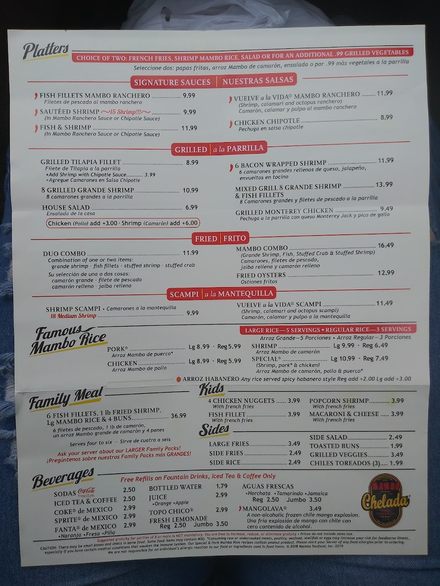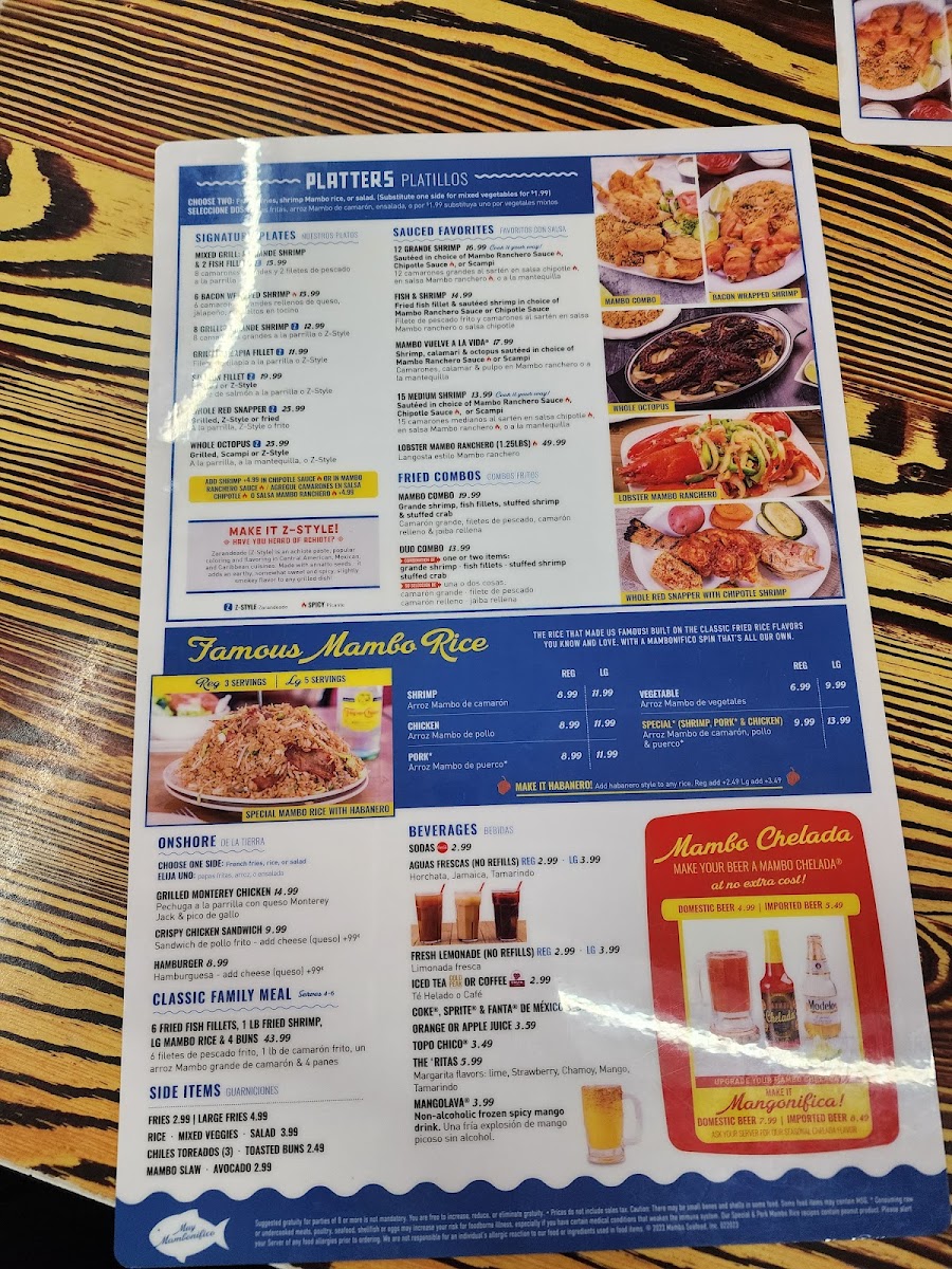 Mambo Seafood stands out not only for its delicious offerings but also for the authenticity and quality that patrons rave about. The comments from diners like Oscar Guevara highlight the satisfying flavors and the inviting atmosphere that wraps around you as soon as you walk in. He mentions the Mambo rice as a "hit" and appreciates that it serves as a cornerstone for any meal. Customers like Ari Jr and Marquita Mosby share sentiments that emphasize exceptional service; consistent praises about attentive staff make the dining experience even more enjoyable. Whether you're savoring refreshing drinks like the Mangolava, a frozen chile mango drink, or indulging in the perfectly fried fish, every visit leaves you craving more.